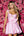 Błyszcząca różowa sukienka z koralikami z kokardą