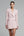 Różowa satynowa krótka sukienka robocza z karbowanymi klapami bodycon