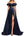 Granatowa Gorset Aksamitna Długa Odkrytymi Ramionami Sukienki Na Wesele z Rozcięciem