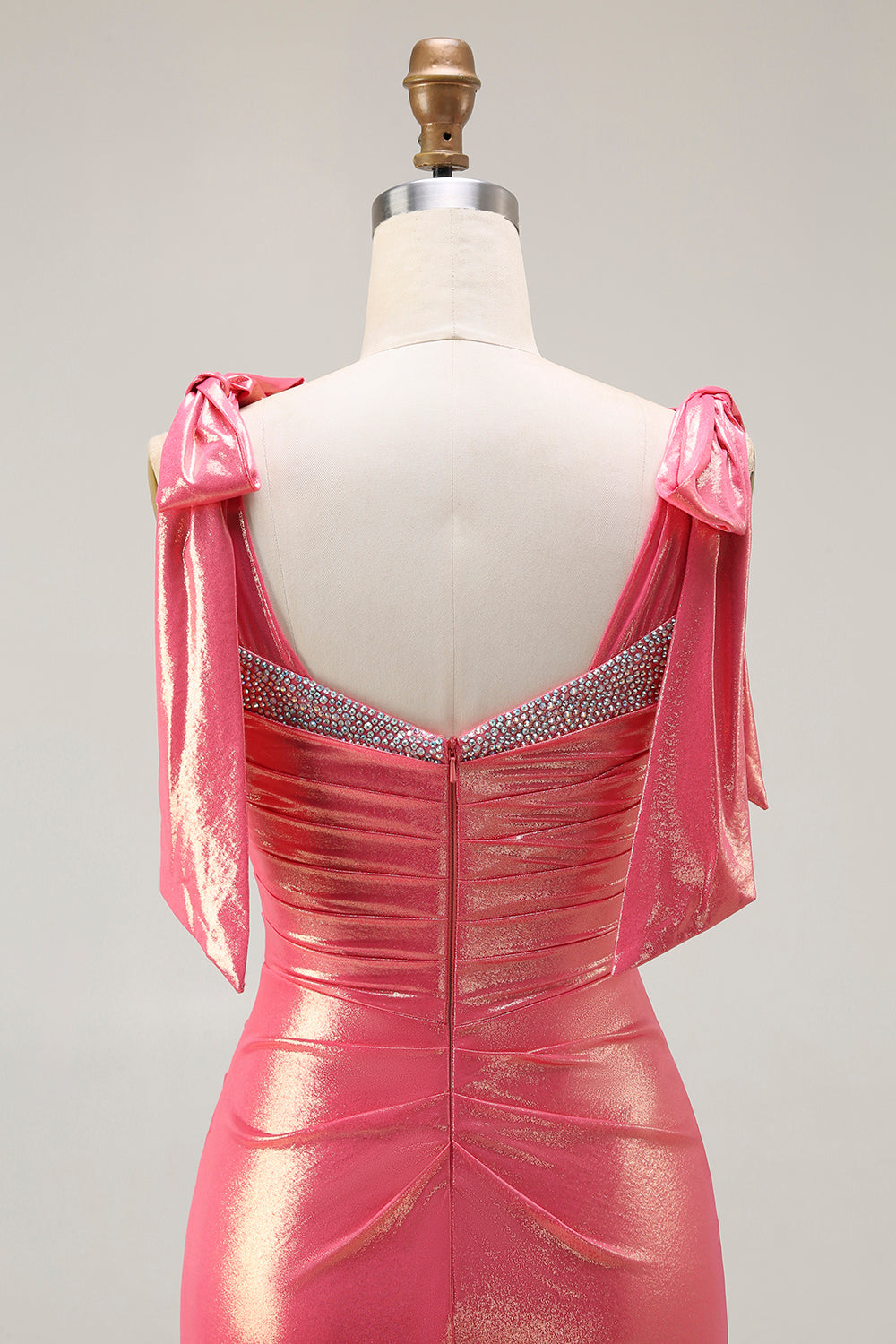 Błyszcząca Coral Metaliczny Syrenka Długa Sukienka Na Studniówkę z Kokardkami
