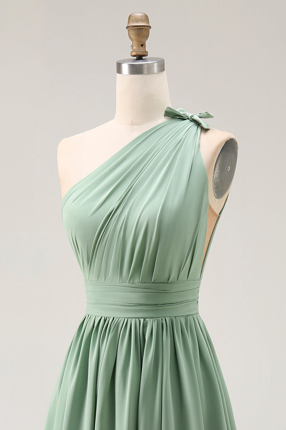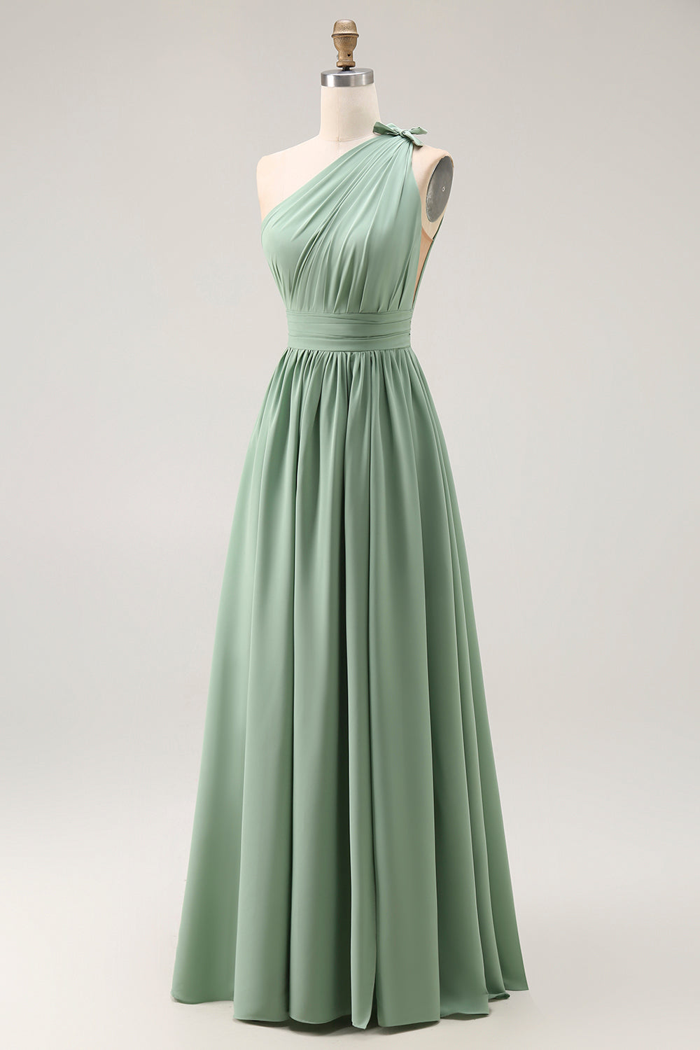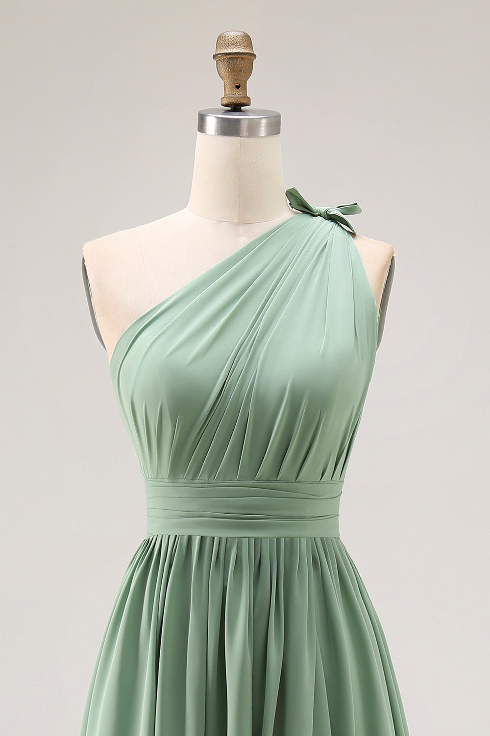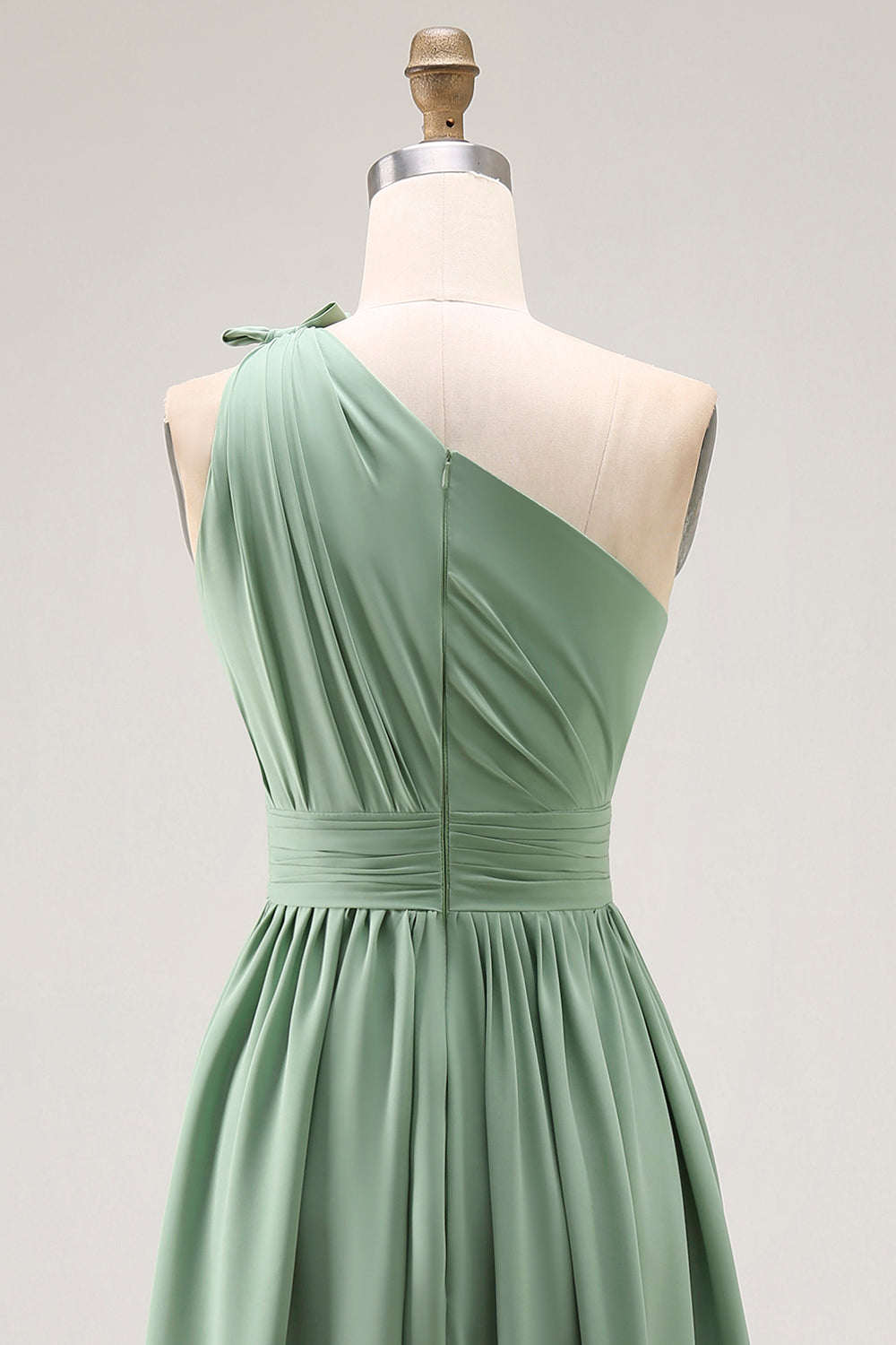 Zielony Szyfon Na Jedno Ramię Długa Sukienki Na Wesele