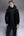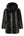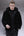 Czarno-biały męski płaszcz zimowy z kapturem ze sztucznego futra zapinanego na zamek