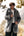 Czarno-biały szal klapa sztuczne futro lampart męski płaszcz