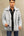 Biały męski płaszcz w panterkę z długim rękawem i długim rękawem z nadrukiem w panterkę