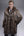 Średniej Długości Brązowy Złoty Płaszcz Zimowy Ze Sztucznego Futra W Panterkę Z Kołnierzem Z Klapami
