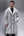 Jasnoszary męski płaszcz ze sztucznym futrem z nadrukiem o średniej długości