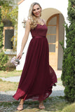 Burgundia Szyfon Kształcie Litery A Długa Sukienka Na Wesele