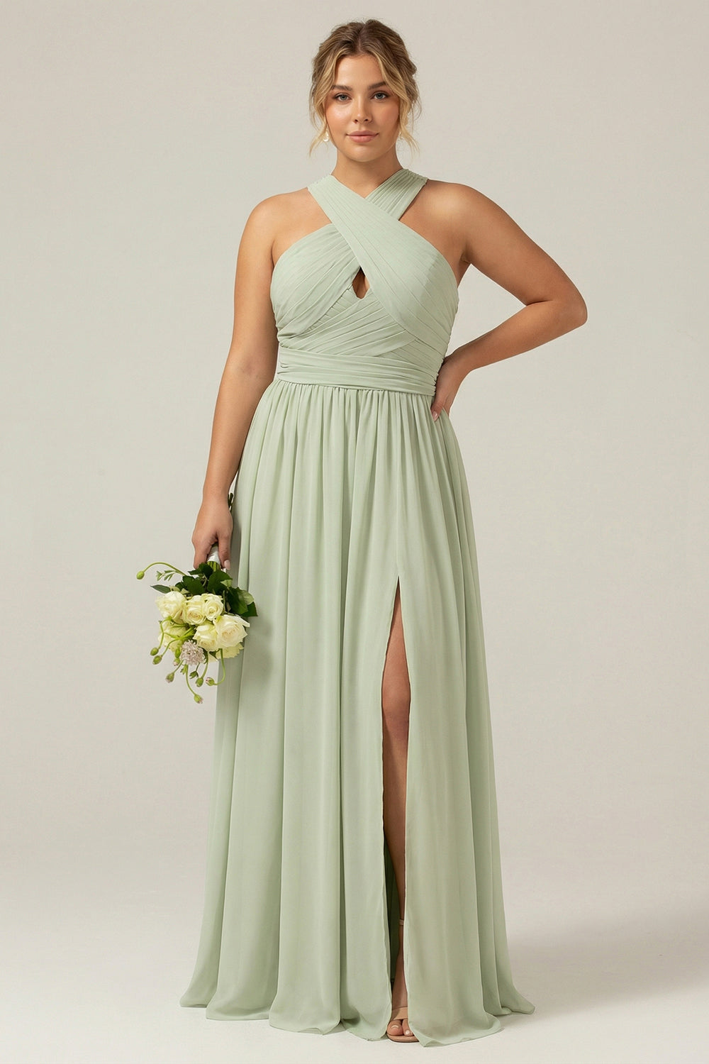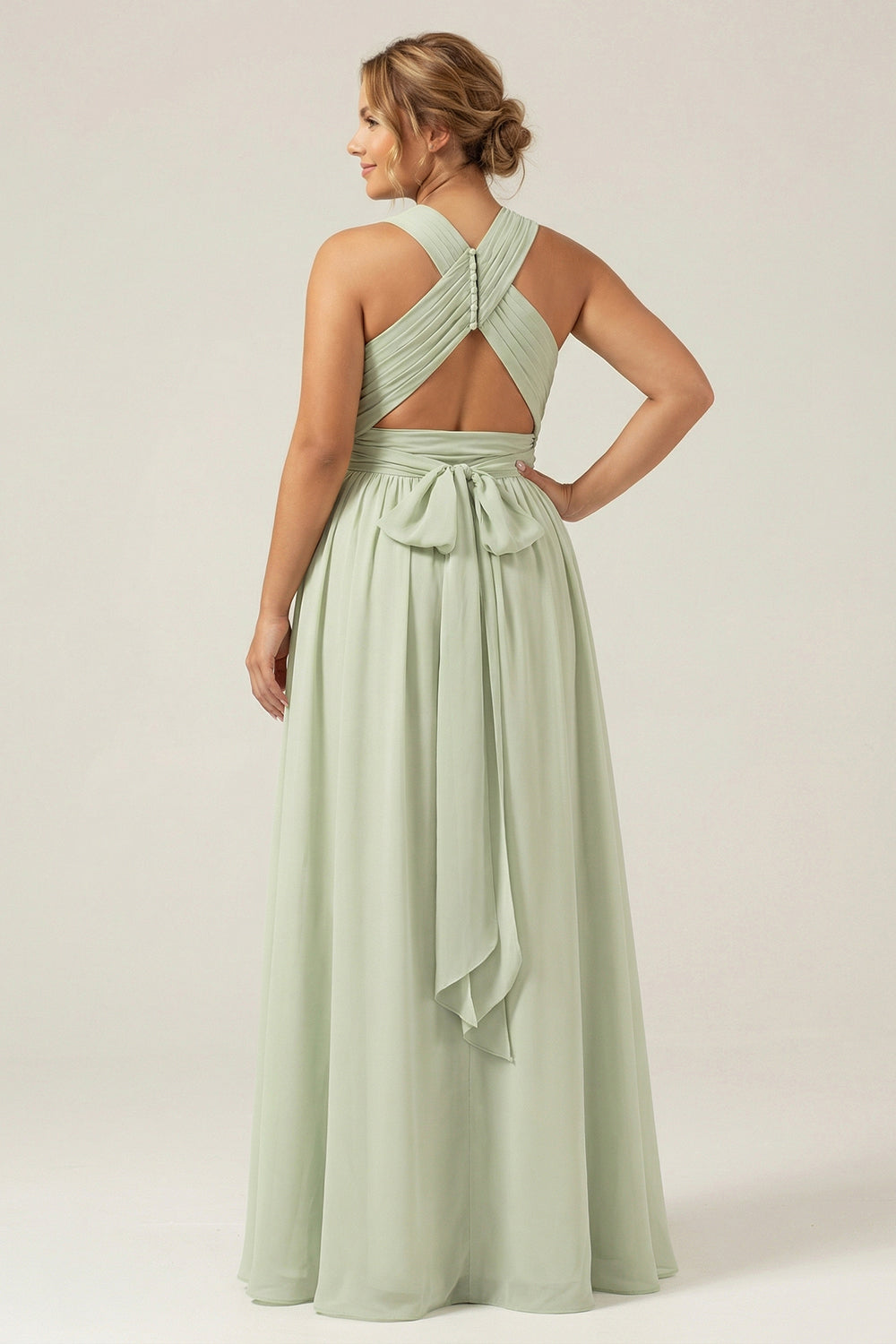 Dusty Sage A Line A Line Hatter Chiffon Plisowana długa sukienka druhny plus size z rozcięciem