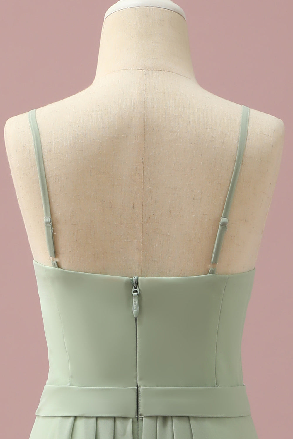 Sage Chiffon Round Neck Junior Bridesmaid Dress Z kaskadowymi falbanami