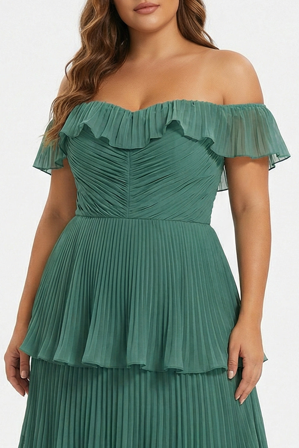 Sukienka druhny w stylu Eukaliptus z plisowaniem na ramionach – długa sukienka plus size