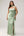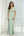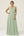Jasnozielone ramiączka spaghetti z falbanami i długą sukienią druhny z rozcięciem