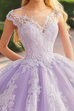 Księżniczka Liliowa suknia balowa z odkrytymi ramionami Falbaniasta tiulowa sukienka Quinceanera z aplikacjami
