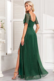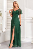 Błyszcząca Ciemnozielona Długa Sukienka Na Studniówkę Z Rozcięciem