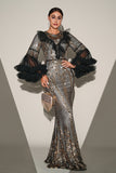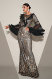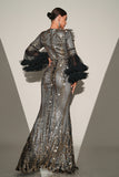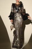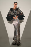 Czarny Srebrny Błyszcząca Syrenka Długa Sukienka Na Studniówkę