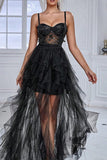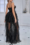 Błyszcząca Czarny Kształcie Litery A Tiulowe Długa Sukienka Na Studniówkę
