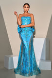 Błyszcząca Pawio-niebieski Syrenka Cekinowe Długa Sukienka Studniówka