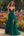 Błyszcząca Ciemnozielony Syrenka Cienkich Ramiączkach Długa Sukienka Na Studniówkę z Peleryna