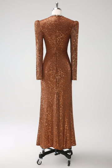 Błyszcząca Kawa Osłona Długie Rękawy Sukienka Na Studniówkę