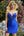 Błyszcząca Królewska Niebieska Bodycon Krótka Sukienka Bez Ramiączek Z Koralikami