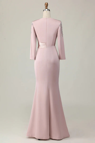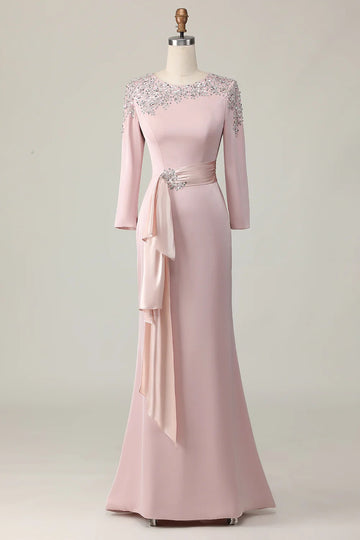 Róż z długimi rękawami z aplikacjami 2-częściowa sukienka dla matki panny młodej