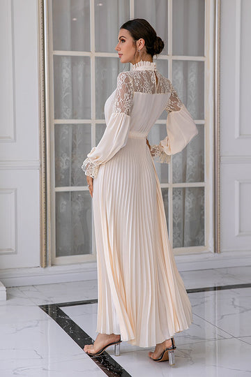 Błyszcząca Szampan Kształcie Litery A Plisowana Długa Sukienka Na Wesele z Koralikami