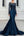 Granatowy Dekolt W Serek Syrenka Satyna Długa Sukienka Dla Matki Panny Młodej