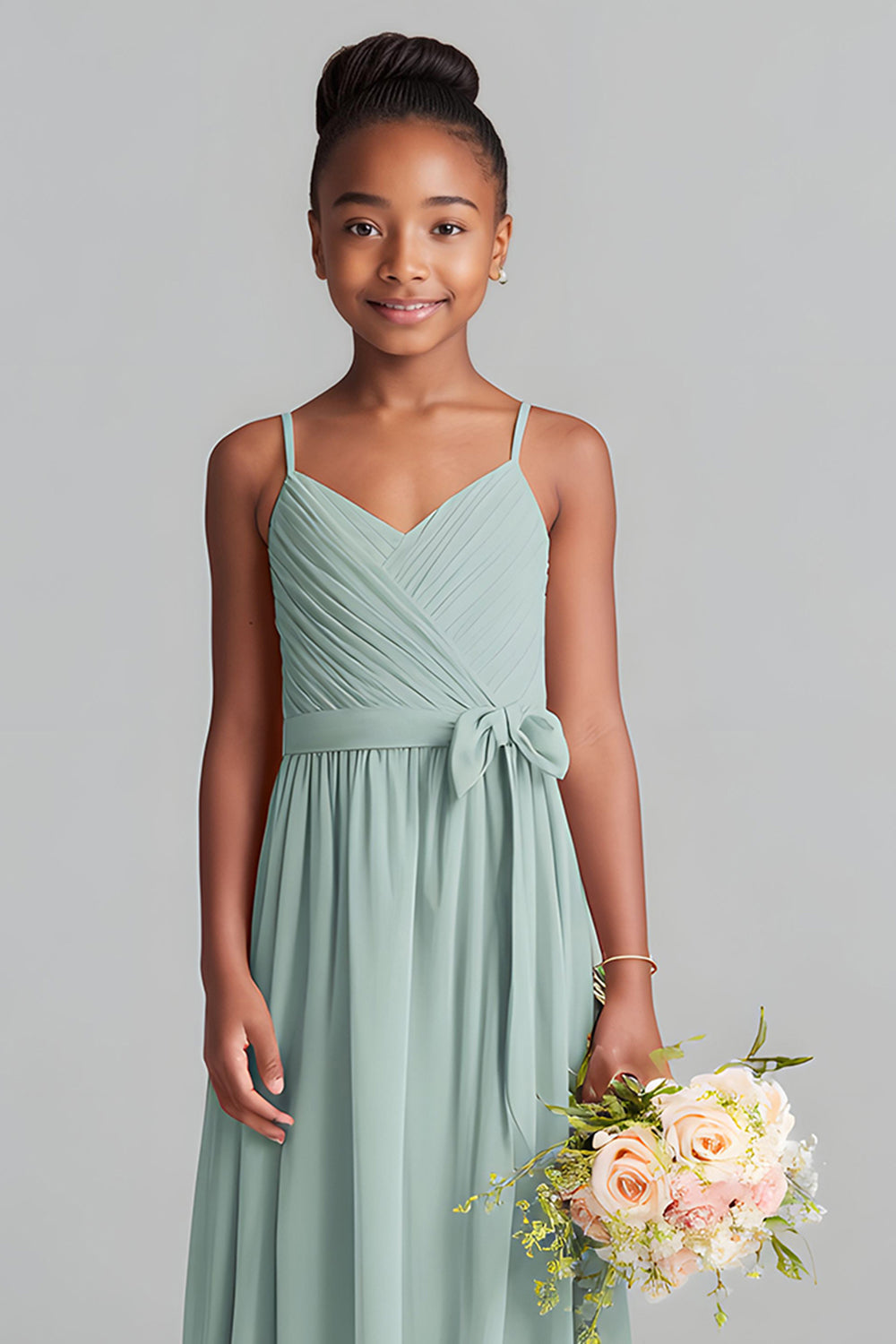 Matcha Spaghetti Ramiączka Szyfonowa Długa Sukienka Druhny Junior