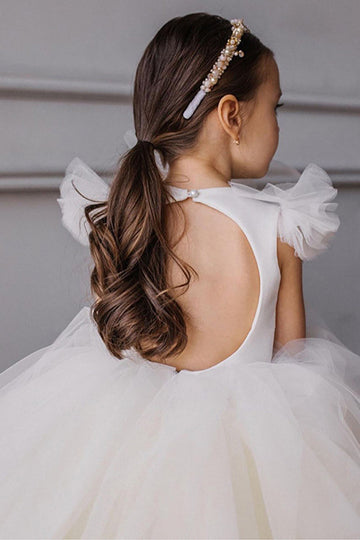 Biały Tiul Sukienki Dla Dziewczynek na Wesele Z Bufiastymi Rękawami