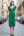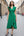 Zielona satynowa sukienka robocza midi z dekoltem w serek z marszczeniami i drapowaniem