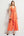 Drapowana pomarańczowa sukienka robocza z dekoltem w szpic z węzłem z przodu