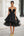 Satynowa czarno-biała krótka sukienka z dekoltem w serek z falbankami i kokardą