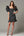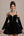 Czarno-biała satynowa krótka sukienka w kropki z kwadratowym dekoltem i falbankami