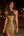 Błyszcząca złota obcisła cekinowa sukienka z dekoltem w serek z frędzlami