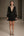aksamitna krótka sukienka koktajlowa z wysokim dekoltem i rękawami