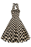 krótka sukienka w kratę w kratę w stylu vintage z lat 1950.