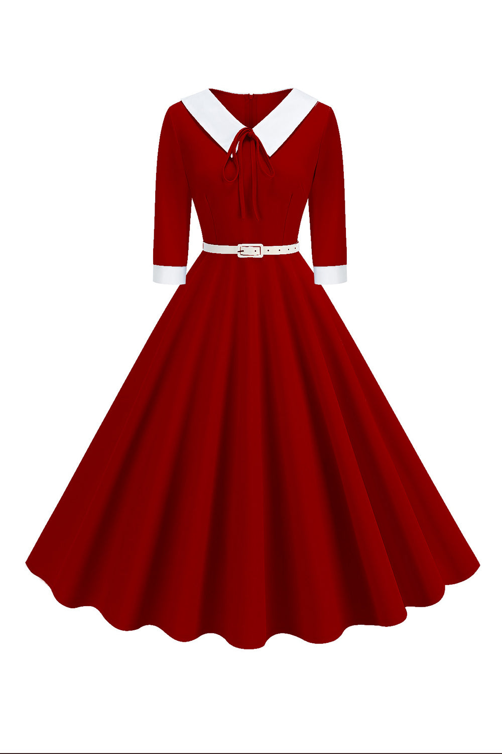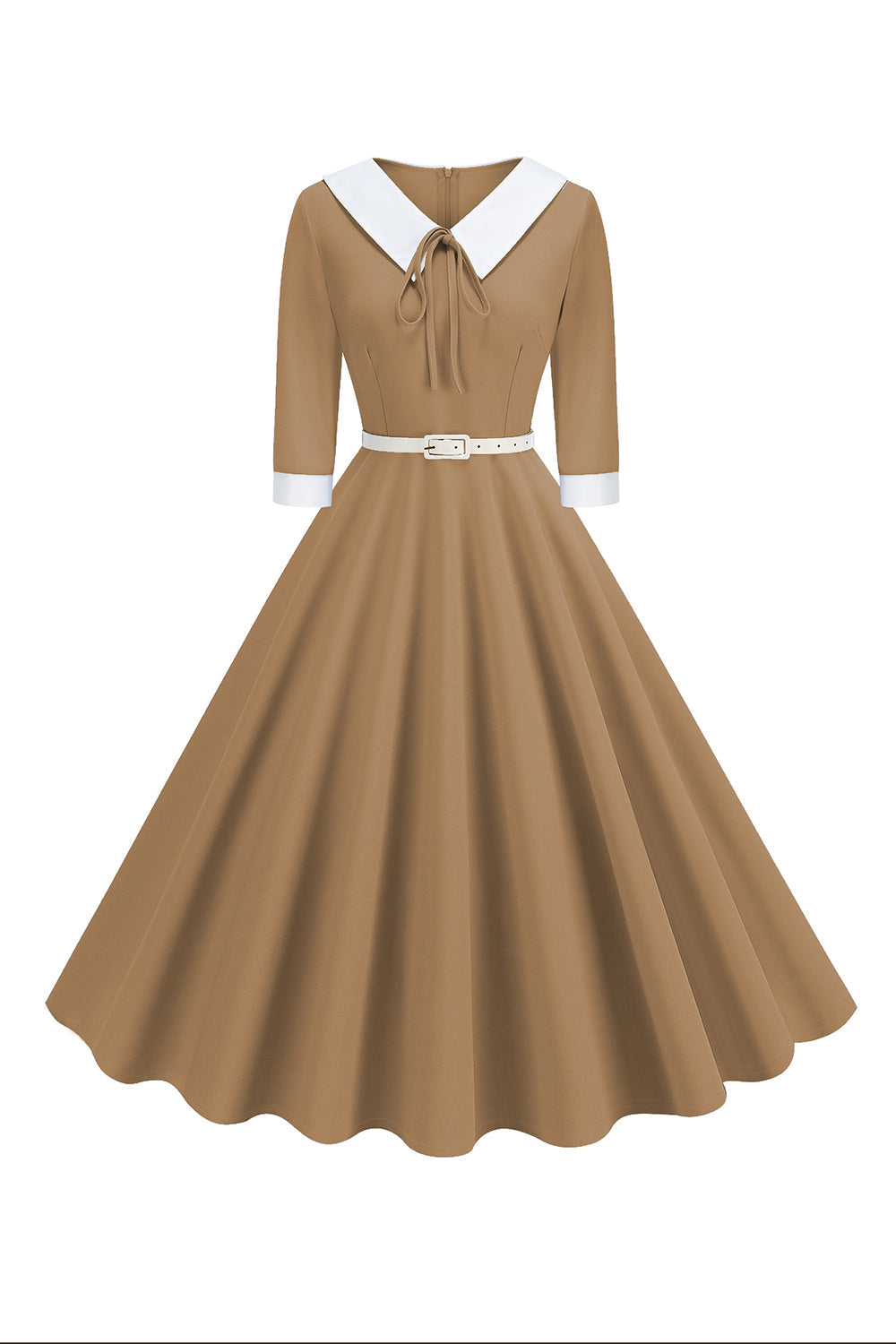 sukienka Midi Midi z krótkim rękawem w kształcie litery A z dekoltem w kształcie litery V 1950