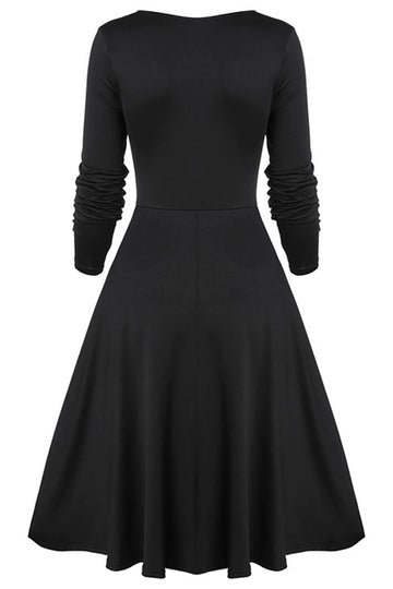 Vintage Czarna sukienka halloweenowa z długim rękawem