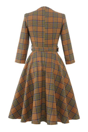 Zielony Vintage Sukienki Lata 50 w Kratkę
