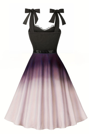 Czarno-Różowa Regulowana Sukienka Bowknot Swing Vintage Z Koronką