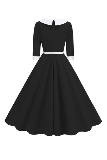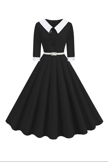 Czarna Sukienka Vintage Lata 50 z Krótki Rękaw