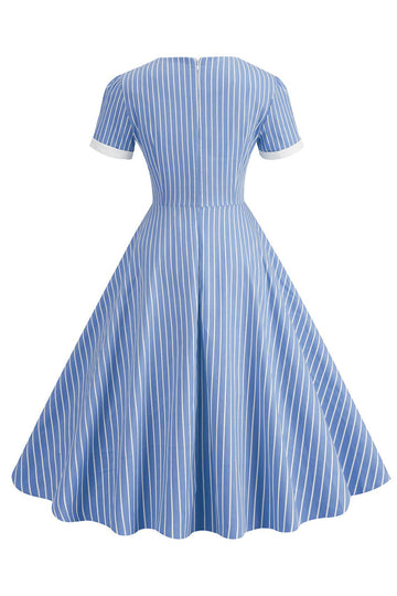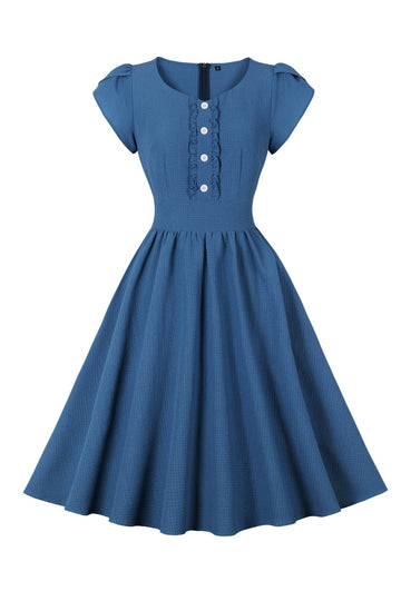 Niebieskie Sukienki Lata 50 z Krótki Rękaw