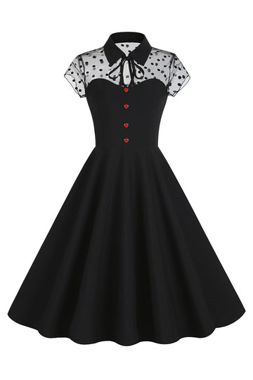 Czarna Sukienka W Groszki Vintage Z Krótkim Rękawem