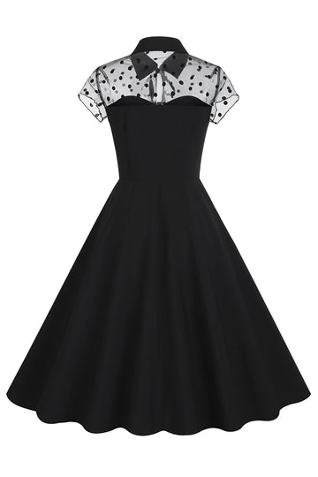 Czarna Sukienka Lata 50 Z Krótkim Rękawem W Groszki