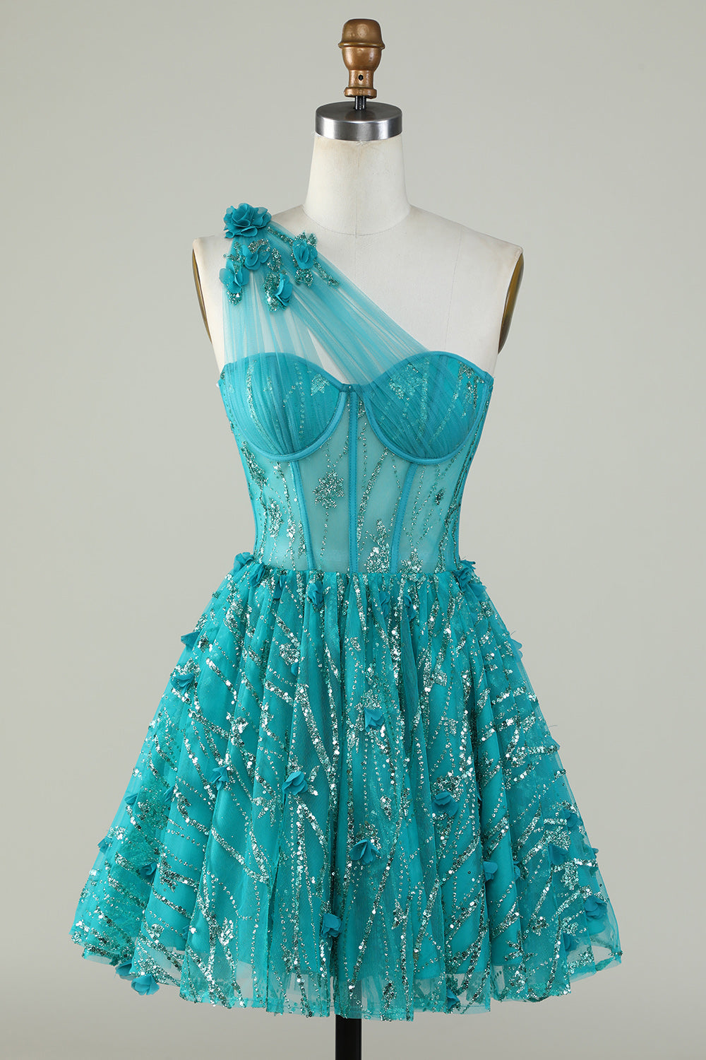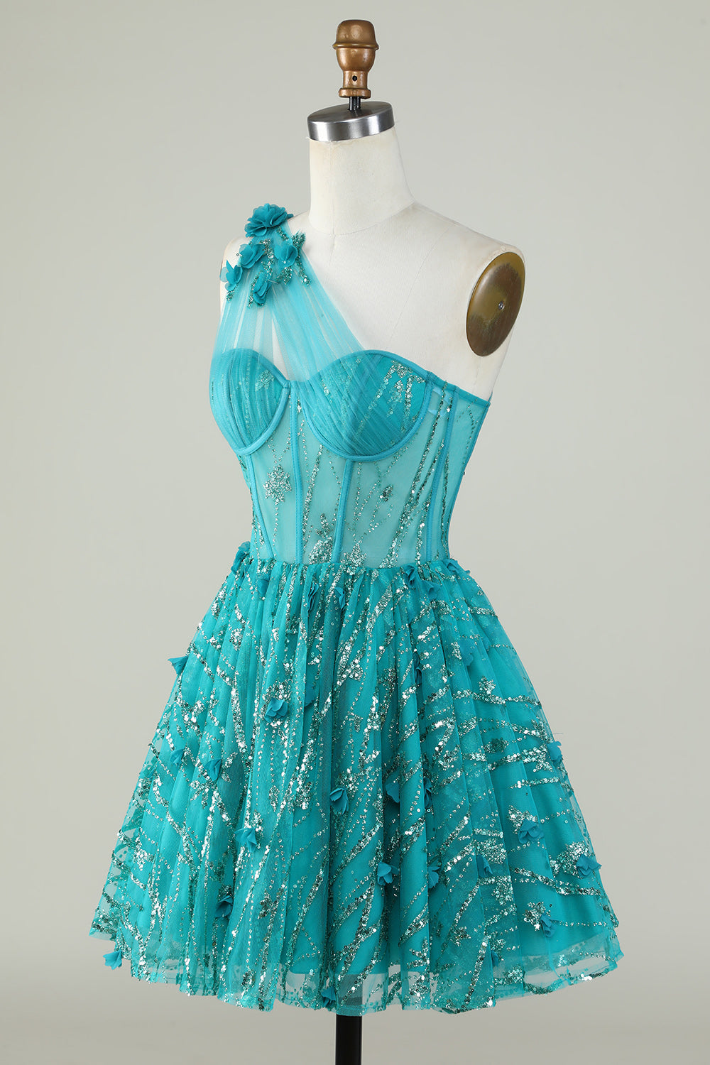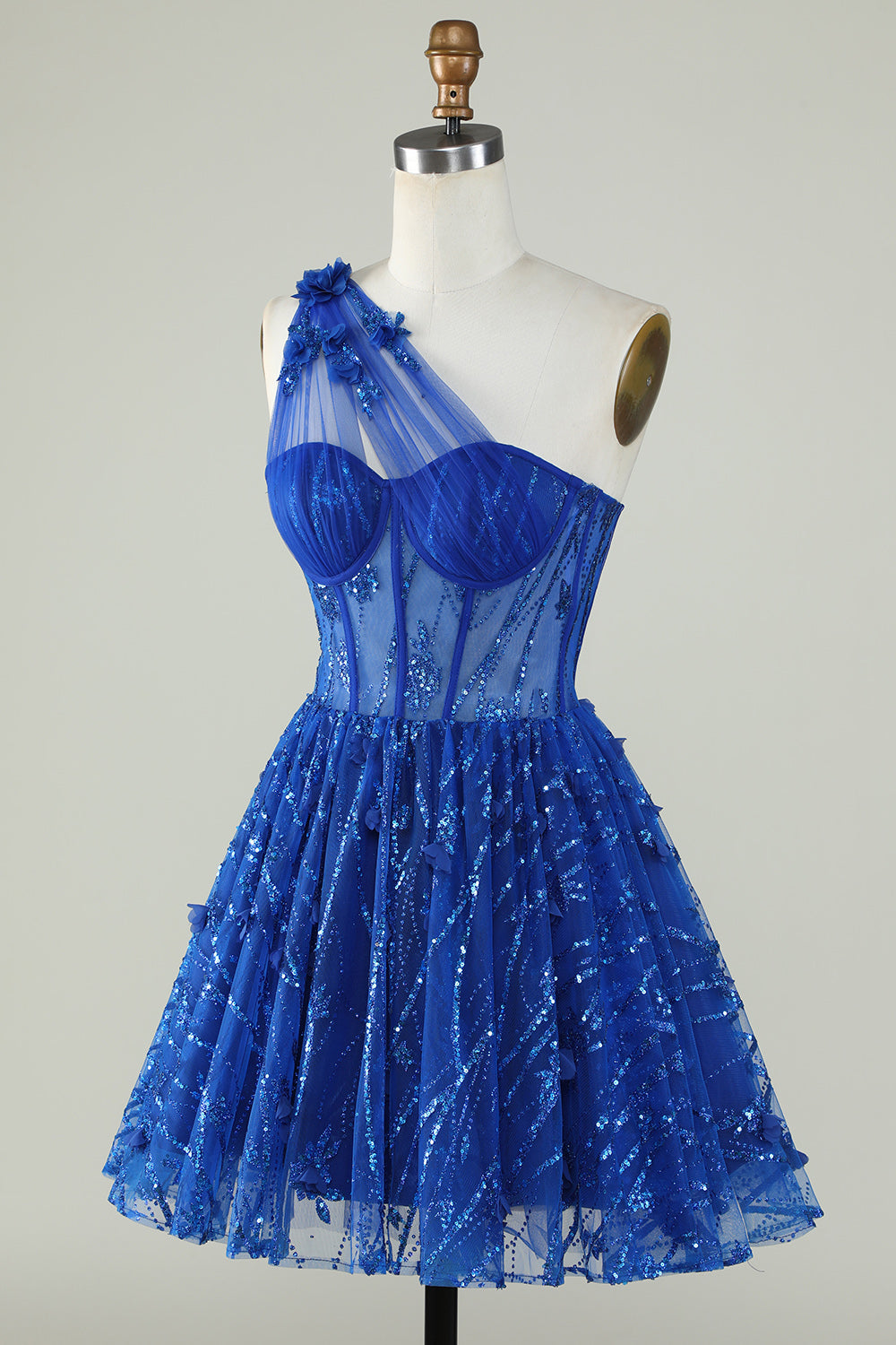 Na Jedno Ramię Królewska Niebieska Gorsetem Sukienki Na Impreze z Koralikami