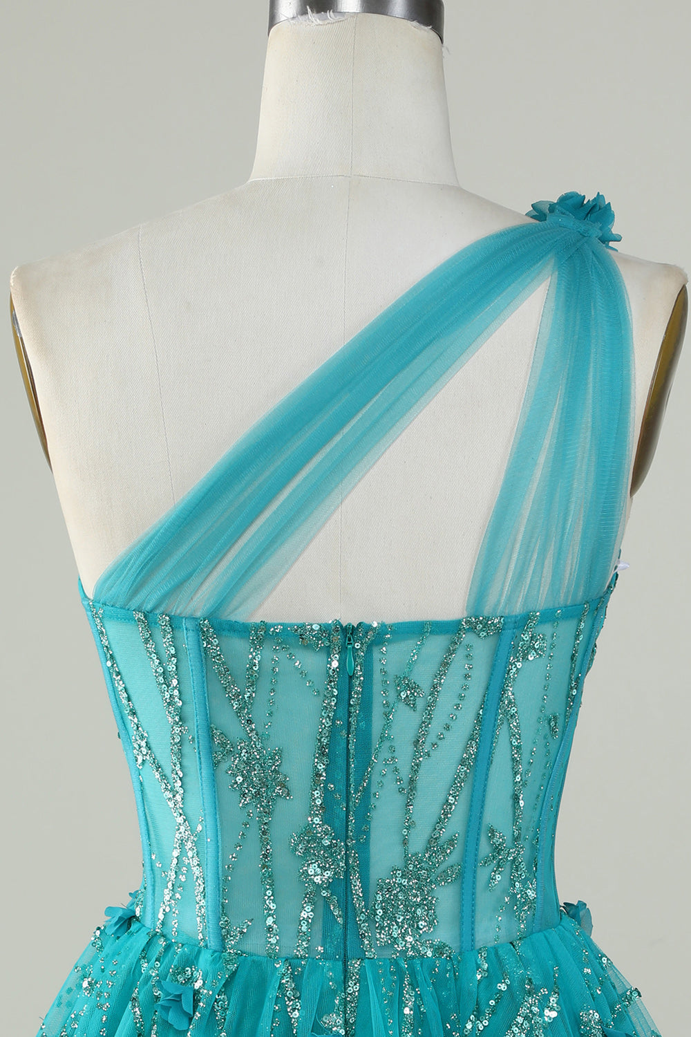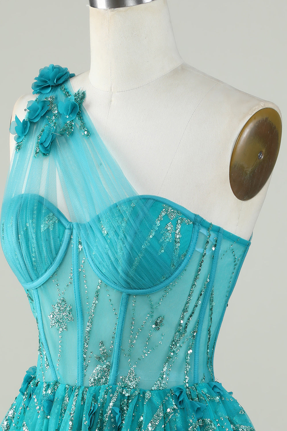 Na Jedno Ramię Zielone Gorsetem Sukienki Na Impreze z Koralikami