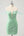 Błyszcząca zielona obcisła sukienka z ruchami na ramiona z cekinami