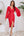 Czerwona obcisła sukienka z cekinami i odpinanymi rękawami
