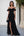 Czarny Szyfon Odkrytymi Ramionami Długa Sukienka Na Studniówkę z Falbankami