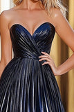 Błyszcząca Granatowa Dekolt W Kształcie Serca Księżniczkowa Sukienka Na Studniówkę