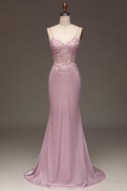 Błyszcząca Rumieniec Syrenka Gorset Długa Sukienki Na Studniówke z Koralikami
